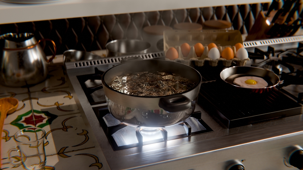 Create a realistic boiling water effect using displacement modifiers, particle bubbles, and volumetric steam shaders — all without fluid simulation. Lightweight and easy to customize.